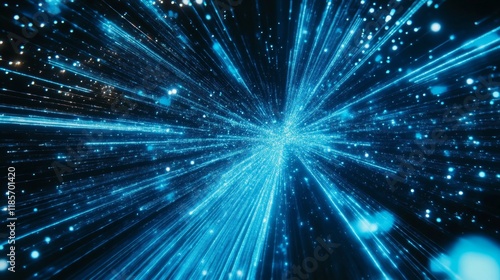 © Futuristictech, Naklejka premium Abstract Light Burst with Sparkles and Radiance in Dark Background