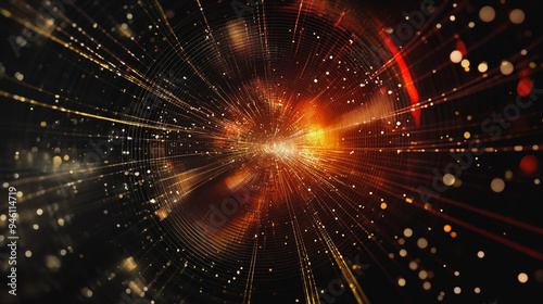 © Teeraphon, Naklejka premium Abstract light explosion and network points, dot, earth's surface, digital background Innovation network points Earth's surface wave background digital wave information technology background