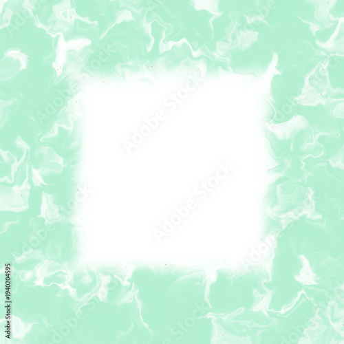 © HayeGareebi, Obraz premium Abstract light mint green and white watercolor texture background with a central blank square frame for copy space, ideal for modern design, banners, and presentations.