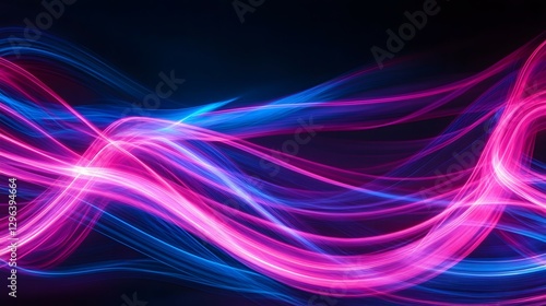Naklejka premium Abstract light painting background with neon pink and blue lines on a black canvas, creating dynamic patterns