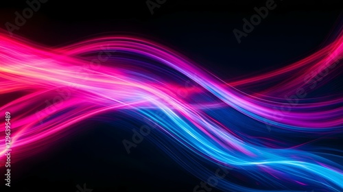 Naklejka premium Abstract light painting background with neon pink and blue lines on a black canvas, creating dynamic patterns