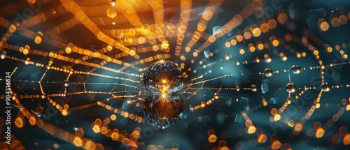 © Starkreal, Obraz premium Abstract Light Pattern with Glowing Orbs and Web