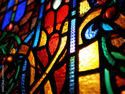 © cavalineri, Obraz premium Abstract Light Patterns Dancing Through Ornate Stained Window