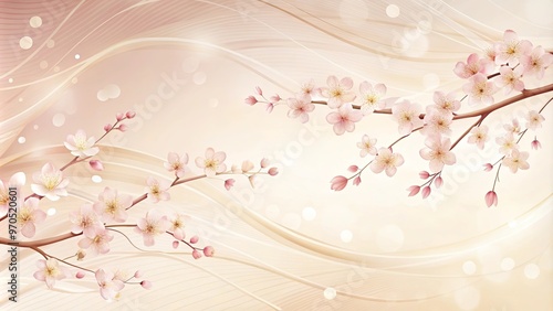 Fototapeta premium Abstract light pink and cream wallpaper with flowing lines and cherry blossom...