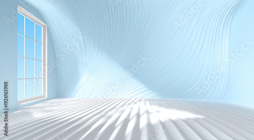 © Wenda, Obraz premium Abstract Light Rays Illuminating Empty Room Interior.