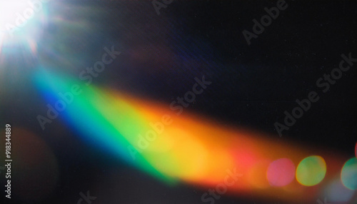 © Arthur, Obraz premium Abstract Light Refraction on Black Background. Spectrum of Rainbow Colors Blurred by Lens Flare, Featuring Vibrant Red, Orange, Green, and Blue Hues in a Soft, Ethereal Glow