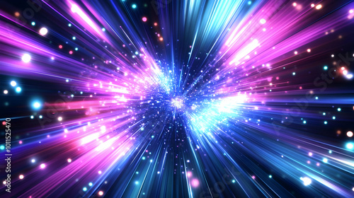 © Neungruedee, Fototapeta premium Abstract Light Speed Background in Blue and Pink