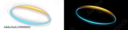 © blagorodez, Obraz premium Abstract Light Speed Lines, Glowing Circular Frame and Futuristic Motion Ellipse.Blue Neon Ring Glow Effect