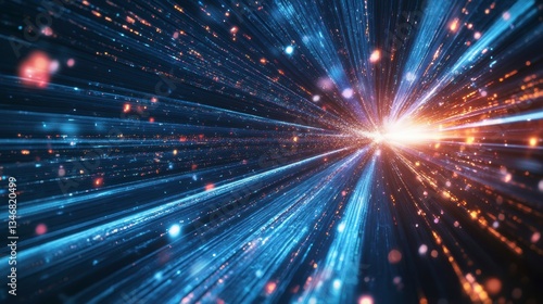 © thenort, Naklejka premium Abstract light streaks converging at a bright center, creating a dynamic, futuristic effect.