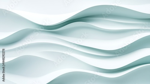 Fototapeta premium Abstract, light teal and white, wavy surface design.
