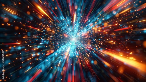 Fototapeta premium Abstract Light Trails and Glowing Particles in a Cosmic Setting