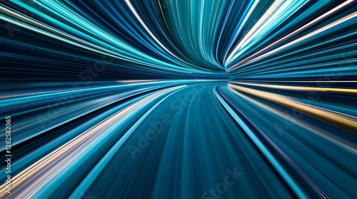 © dongwei, Fototapeta premium Abstract Light Trails Creating Motion Blur Effect in Blue Tones