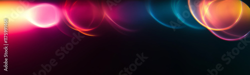 © Andres Mejia, Fototapeta premium Abstract light trails creating vibrant circles on dark background