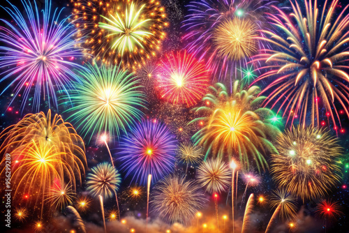 Fototapeta premium Abstract Light Trails from Fireworks in the Night Sky