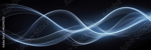 Naklejka premium Abstract light trails in shades of cool blue weave dynamically against black...