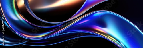 © KenPix, Fototapeta premium Abstract light trails, vibrant neon colors, glossy curved surfaces, dynamic motion blur, futuristic technology aesthetic, sleek metallic reflections, high contrast, black background, ultrawide panoram