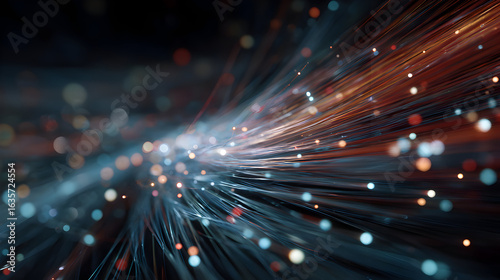 © Biru Langit Desember, Fototapeta premium Abstract light trails with bokeh effects create a modern and dynamic background showcasing blurred lines of light in motion perfect for technology designs and energy
