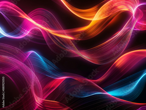 © Yana Art and Design, Naklejka premium Abstract Light Waves on Black, Generative AI Illustration
