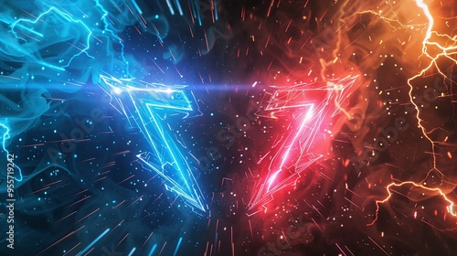 © Ahmad-Muslimin, Fototapeta premium Abstract Lightning Bolts with Blue and Red Lighting