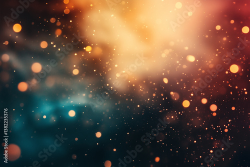 © Dwiyan, Obraz premium Abstract Lights and Bokeh Background with Warm Golden and Teal Tones