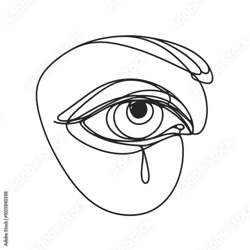 Obraz premium Abstract line art expressive eye with teardrop illustration