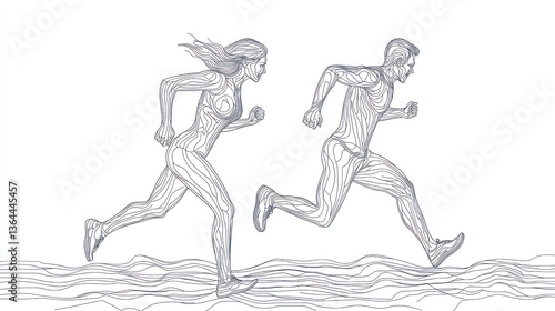 Fototapeta premium Abstract line art illustration of a woman and man running.