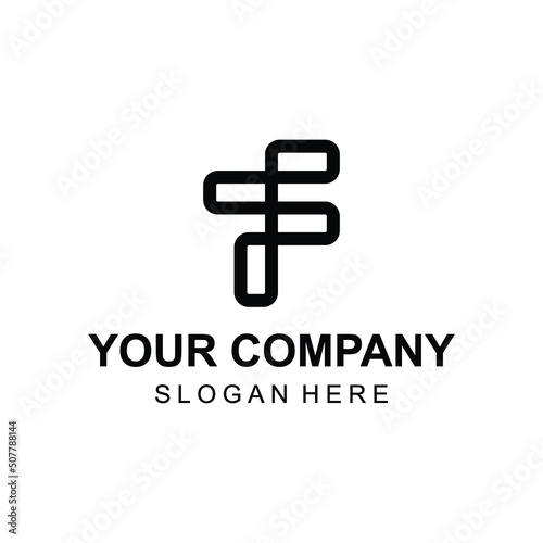 Obraz premium Abstract linear letter F tech logo design