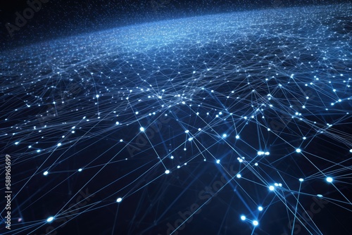 Obraz premium abstract lines and dots on a dark background. Generative AI