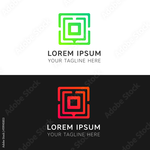 Obraz premium Abstract lines sign iconic square logo vector design. O letter e