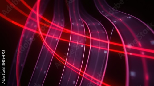 Obraz premium Abstract lines, vibrant red glows, dark background. Curves intersect,...