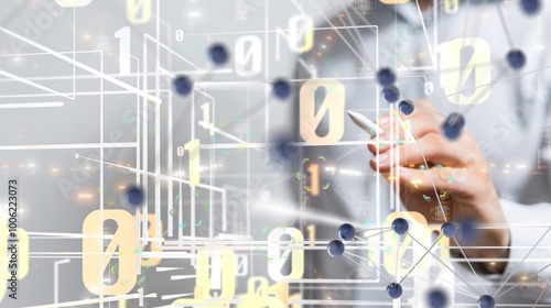 © vegefox.com, Naklejka premium abstract lines with dots over dark background.
