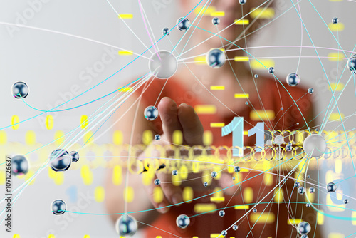 Obraz premium abstract lines with dots over dark background.