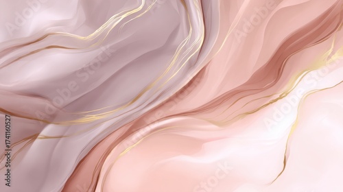 Fototapeta premium Abstract liquid marble textures in soft pink, peach, and gold, smooth flowing forms, clean space for text