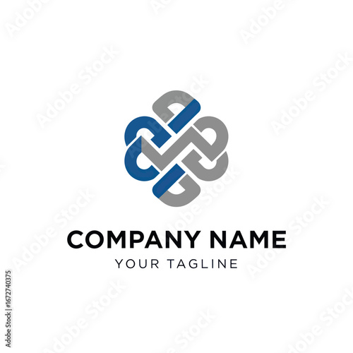 Obraz premium Abstract logo design with intertwined shapes in blue and gray.