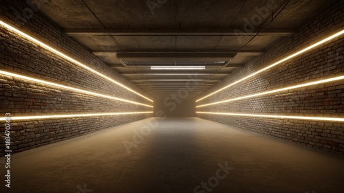 © The Little Hut, Fototapeta premium Abstract Long Exposure of a Dark Hallway with Neon Lights for Modern Designs
