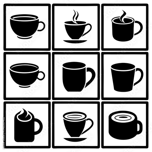 © Hafiz283, Obraz premium Abstract Love-Themed Coffee Cup Art with Curved Lines and Simple Elegance