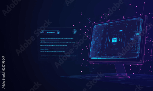 © Perfect Vector, Fototapeta premium Abstract Low Poly AI Computer System with Speech Interface on Blue Background