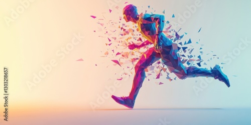 © Fakih_art, Fototapeta premium Abstract Low Poly Runner: Dynamic Motion and Speed in Vivid Colors