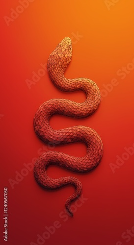 Obraz premium Abstract Low Poly Snake on Red Background Geometric Reptile Art Modern Design