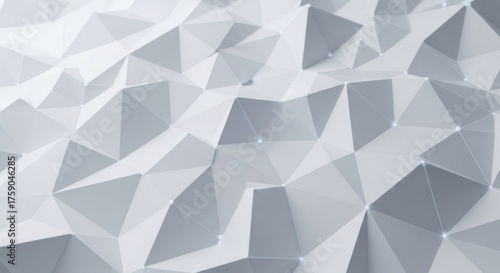 © Dean, Obraz premium Abstract low poly white surface with bright node connections