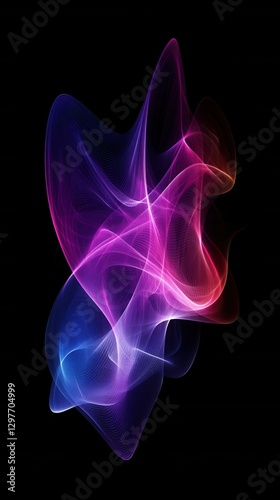 © Duskcraft, Naklejka premium Abstract luminous wave on black background with vibrant gradient colors for modern design and artistic expression in digital art dynamic flow