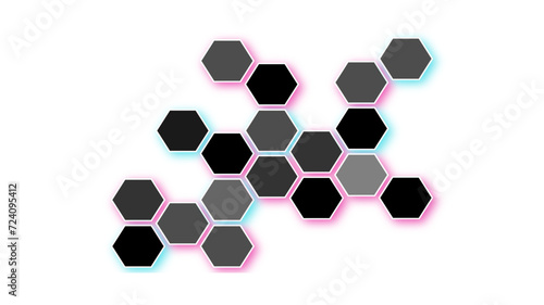 © Creative Design, Obraz premium Abstract Luxurious Black Hexagonal Background. Seamless honeycomb pattern background with gradient stroke. 3D Futuristic abstract honeycomb mosaic background. Geometric mesh cell texture.