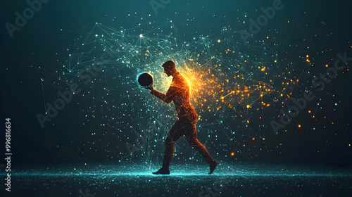 © Neural9 Project, Obraz premium Abstract Man Holding Sphere with Network Connections