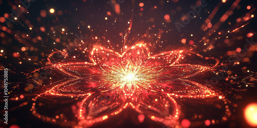 Fototapeta premium Abstract mandala made from glowing red and gold lines.