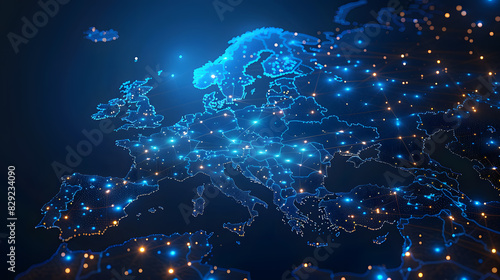 Fototapeta premium Abstract map of Western Europe with digital connections as global network concept
