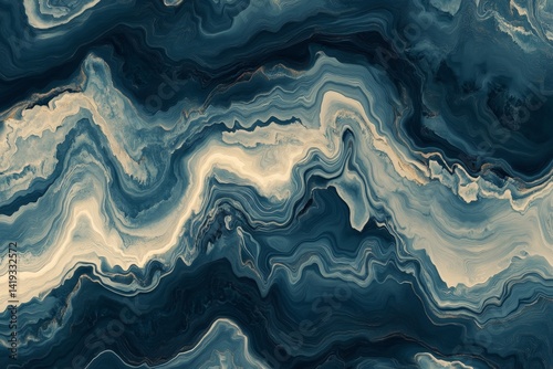 Fototapeta premium Abstract marbled pattern in deep blues, creams, and golds. Intricate flowing lines create a dynamic and mesmerizing design