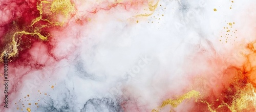 Fototapeta premium Abstract marbled texture with red orange and gold hues on a white background ideal for use as a backdrop or design element Copy Space