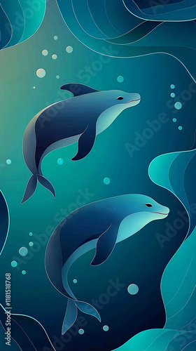 Fototapeta premium Abstract Marine Life Background with Ocean Waves