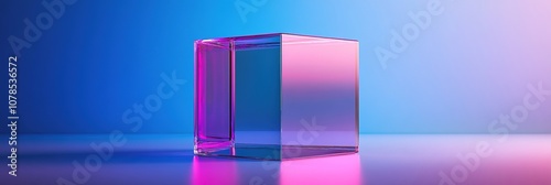 © Lu, Fototapeta premium Abstract Marketing Background Featuring a 3D Rendering of Smooth Transparent Glass with a Gradient Texture. This Composition Showcases Light and Shadow Play Against a Soft Blue-Purple Backdrop, Utiliz