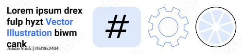Fototapeta premium Abstract metadata tag, gear outline, and segmented circle elements represent modern tech, innovation, collaboration. Ideal for technology, teamwork, workflow, data infrastructure engineering
